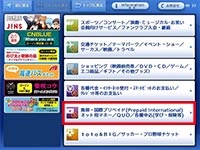 「携帯・国際プリペイド(Pripaid International)ネット用マネー/QUO/各種申込(学び・保険等)を選択します。