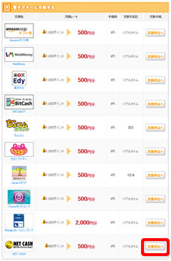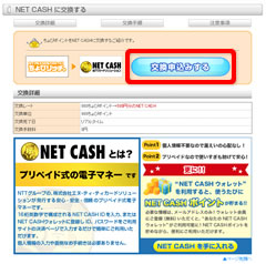 「NET CASHに交換する」ページにある「交換申込みする」をクリックします。