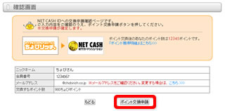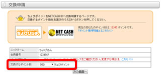 「ポイント交換所」ページの「電子マネーに交換する」から「NET CASH」を選択します。
