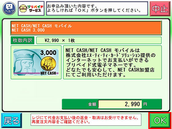 【ご注意】NET CASHの交換・返品はお受けすることができません。