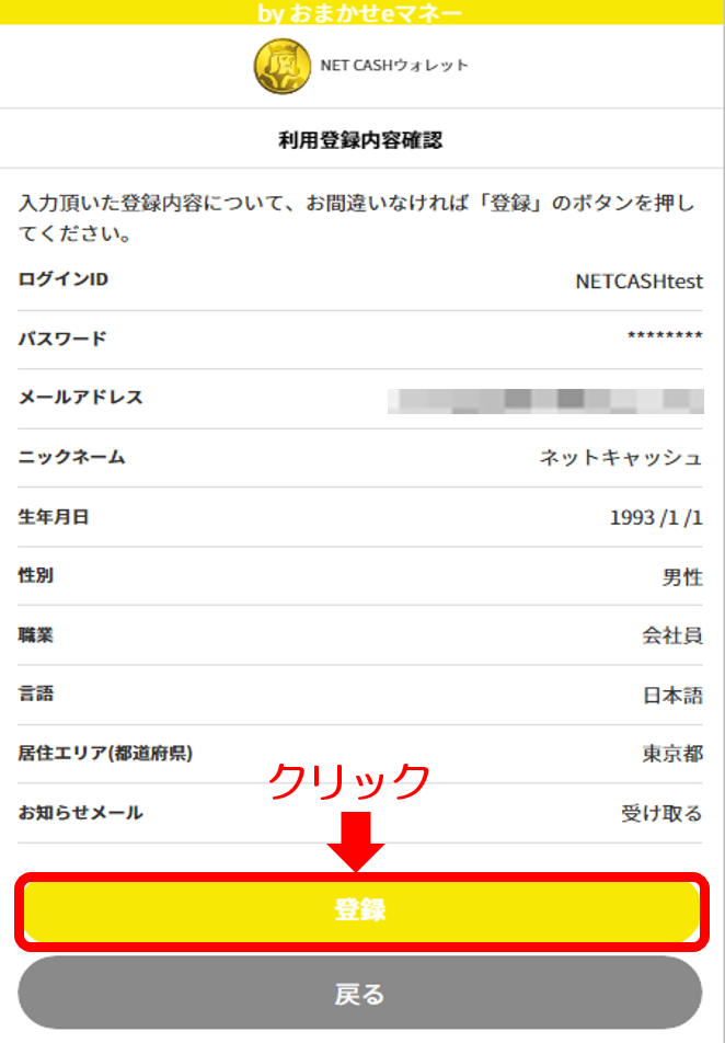 登録内容をご確認いただき、よろしければ【登録】ボタンをクリック。